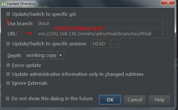 本人想再AndroidStudio下面切换项目地址,,,有人知道怎么操作么? 解决方案:40分 右键工程 ,或选择菜单上的VCS ,然后选择 Subversio ,选择 update directory , CodeBye 版权所有丨如未注明 , 均为原创丨本网站采用BY-NC-SA协议进行授权 , 转载请注明有人知道AndroidStudio下面怎么切换svn地址么?! 喜欢 (0)赏[1034331897@qq.com]分享 (0)